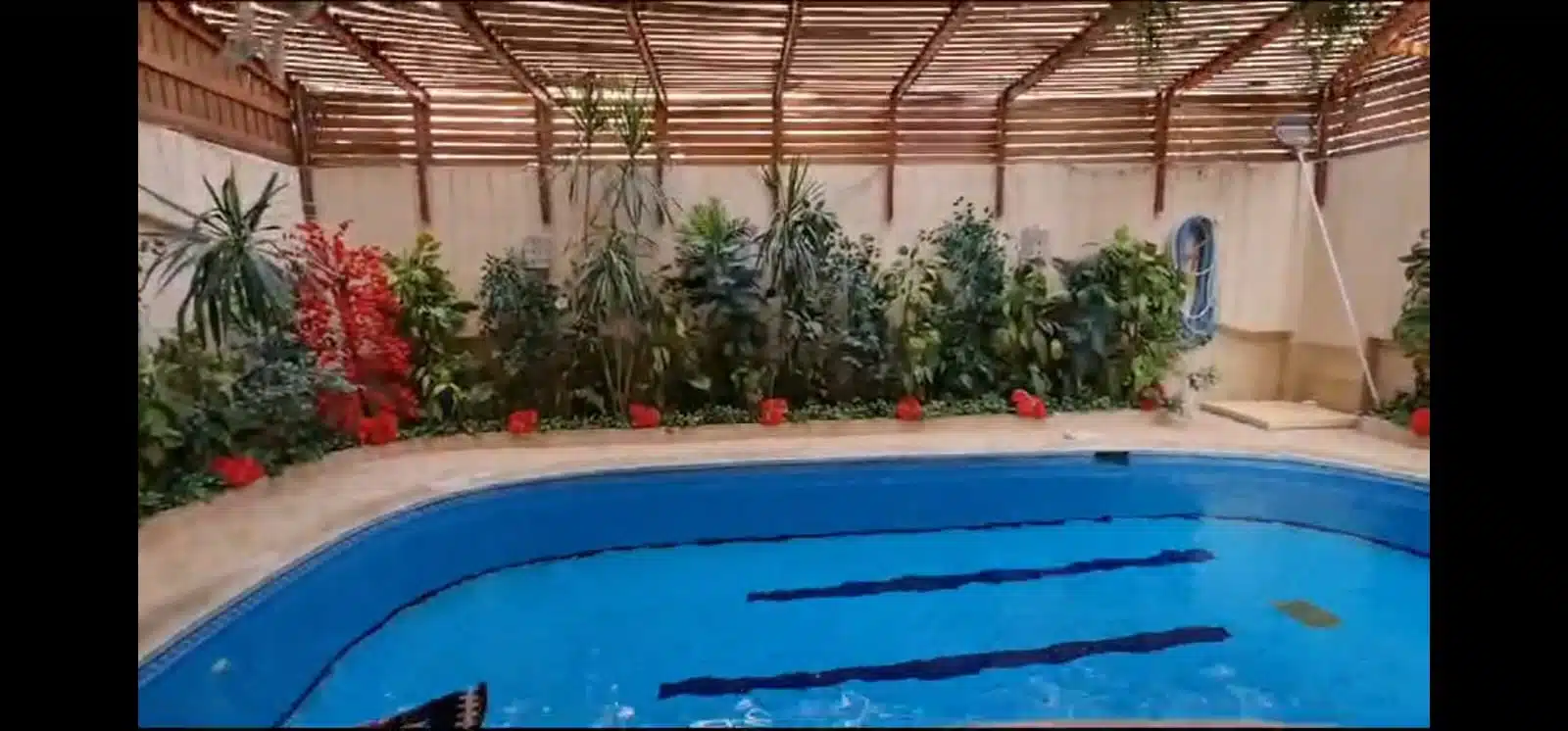 🏊♂️ حمام سباحة مغطى بالكامل داخل الحديقة بمساحة تقريبية 30 م².