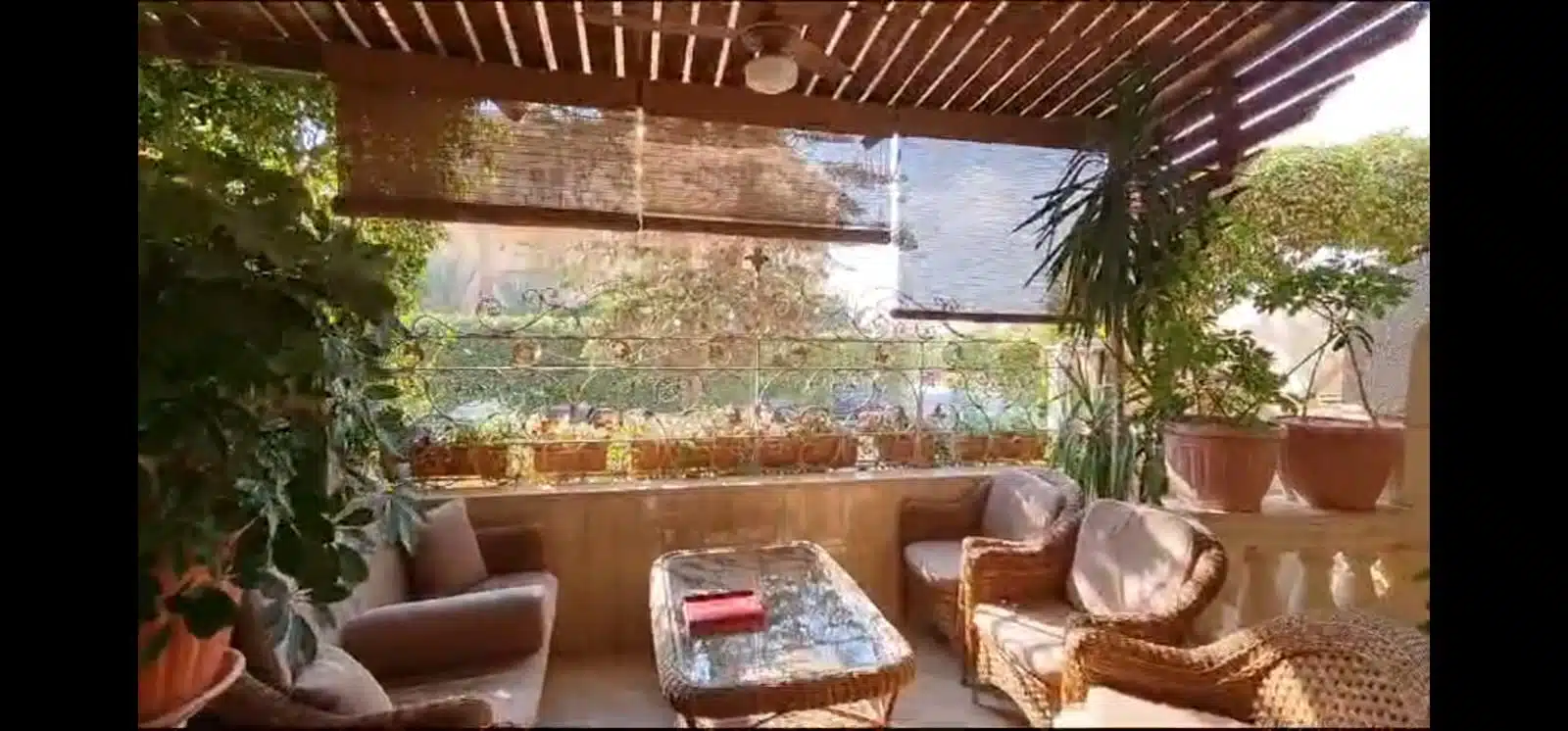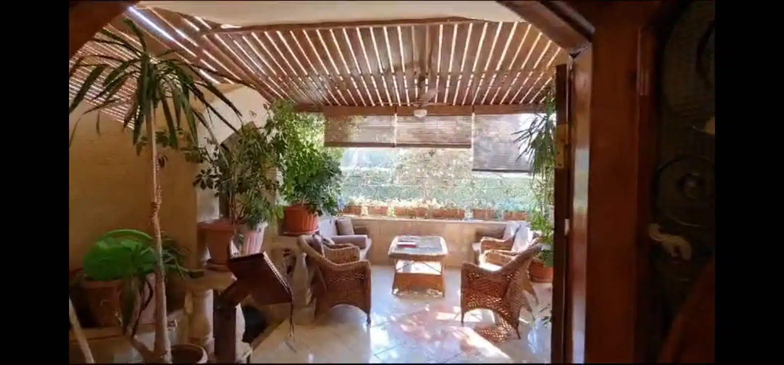 تراس خلفي يطل على حمام السباحة.