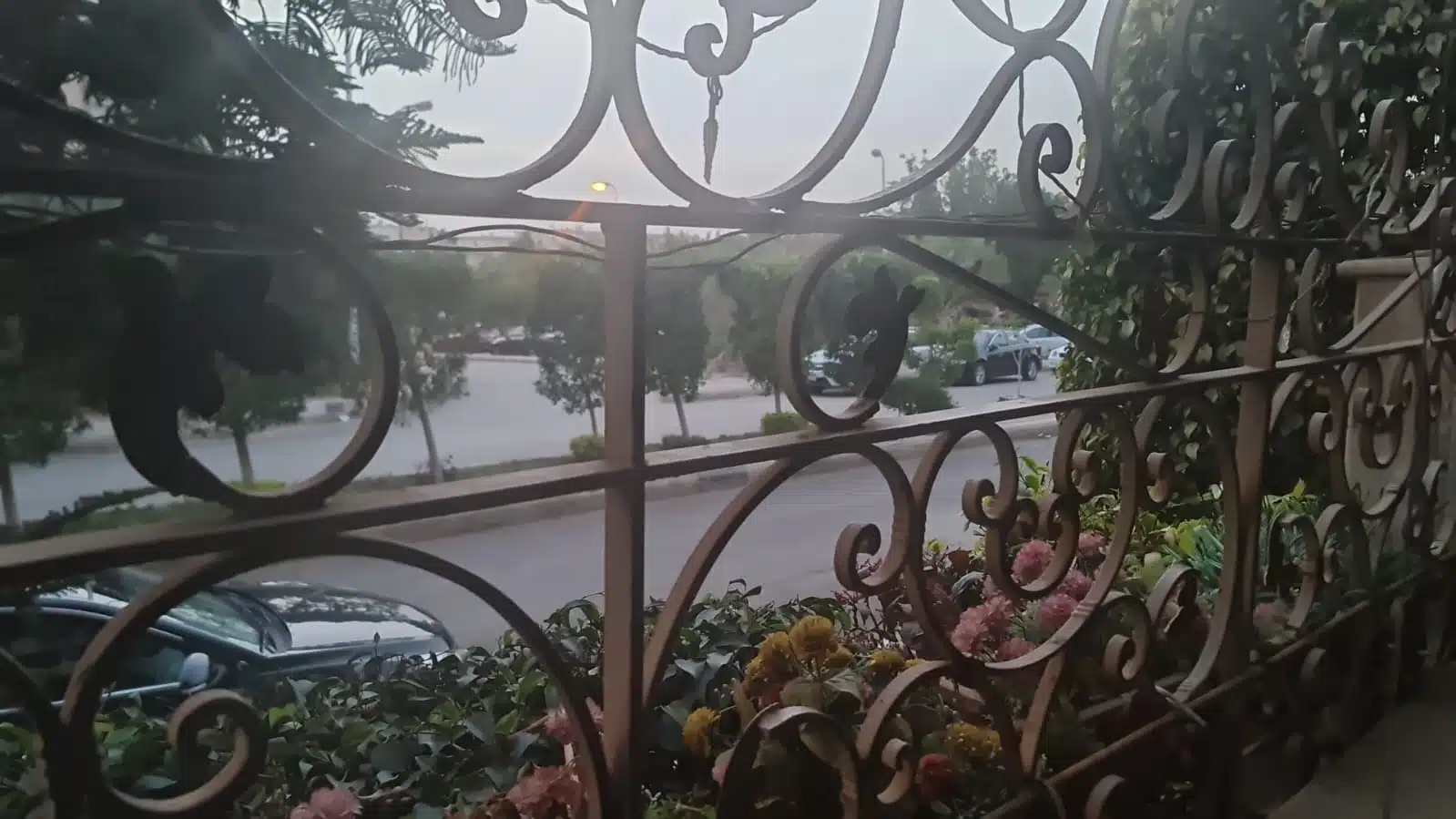 أمامها مربع جنينة واسع وشارع مزدوج.