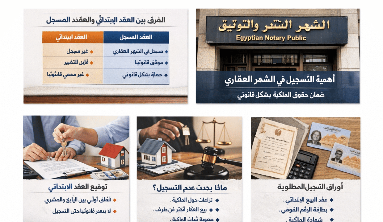 الفرق بين العقد المسجل والابتدائي: ما يجب أن تعرفه قبل شراء العقار في مصر